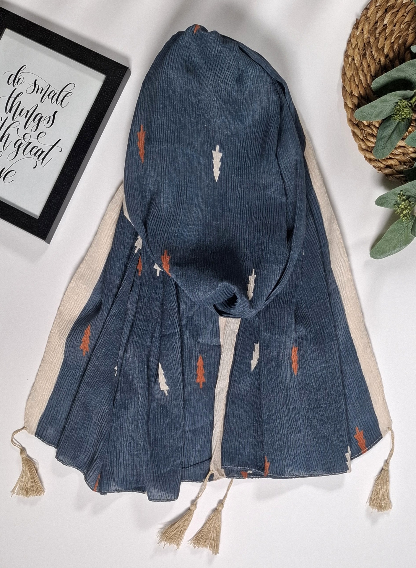 شال پلیسه نخی ابریشم مدل کاج کد F 638 (1)