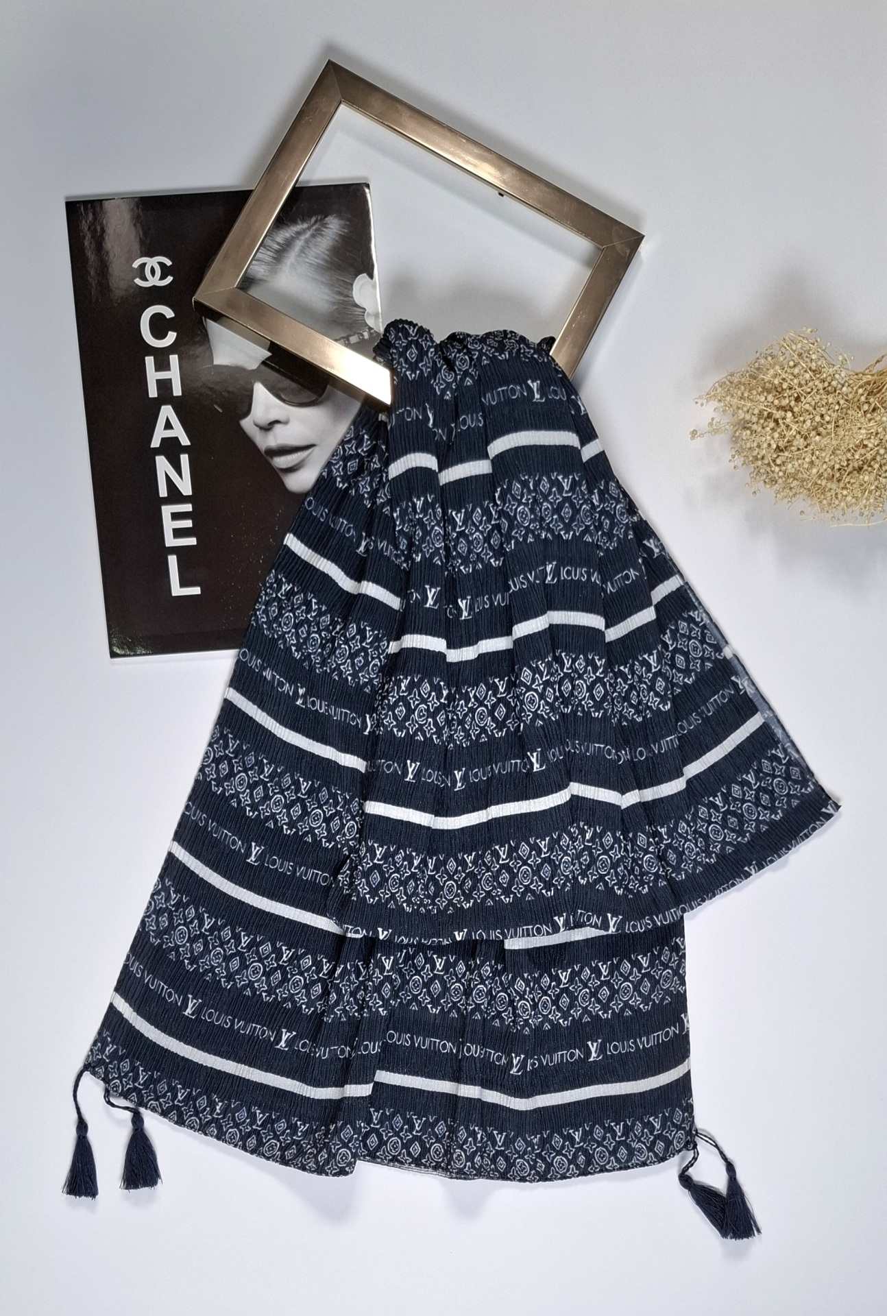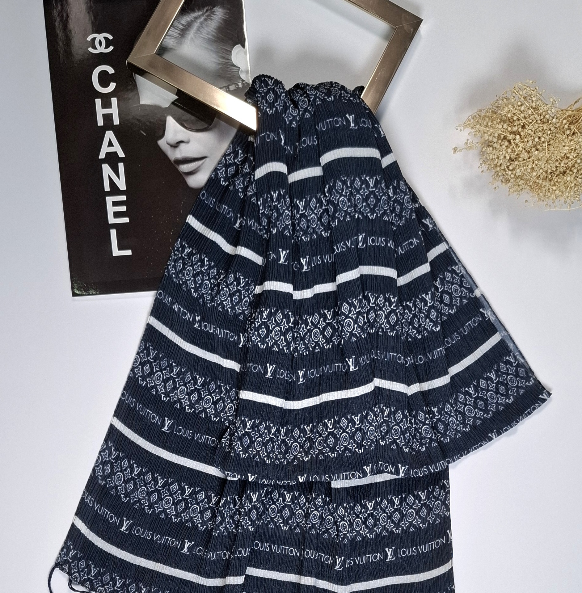 • شال پلیسه نخی ابریشمی مدل لوییزویتون کد F763-5