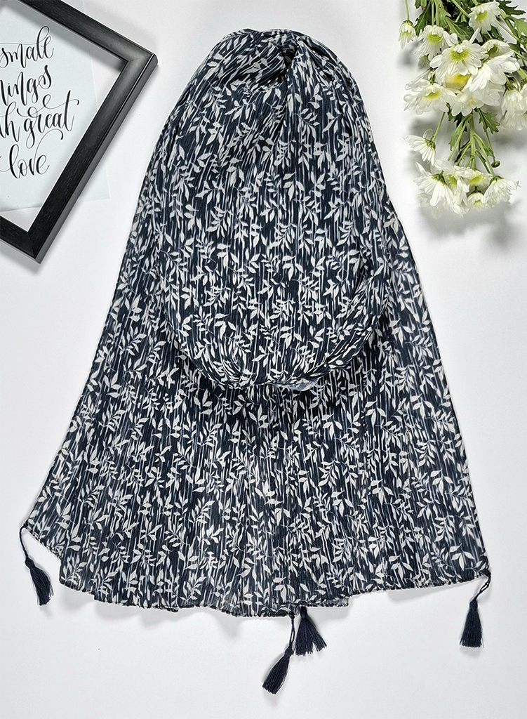 شال پلیسه نخی ابریشمی مدل برگ کدF764-2