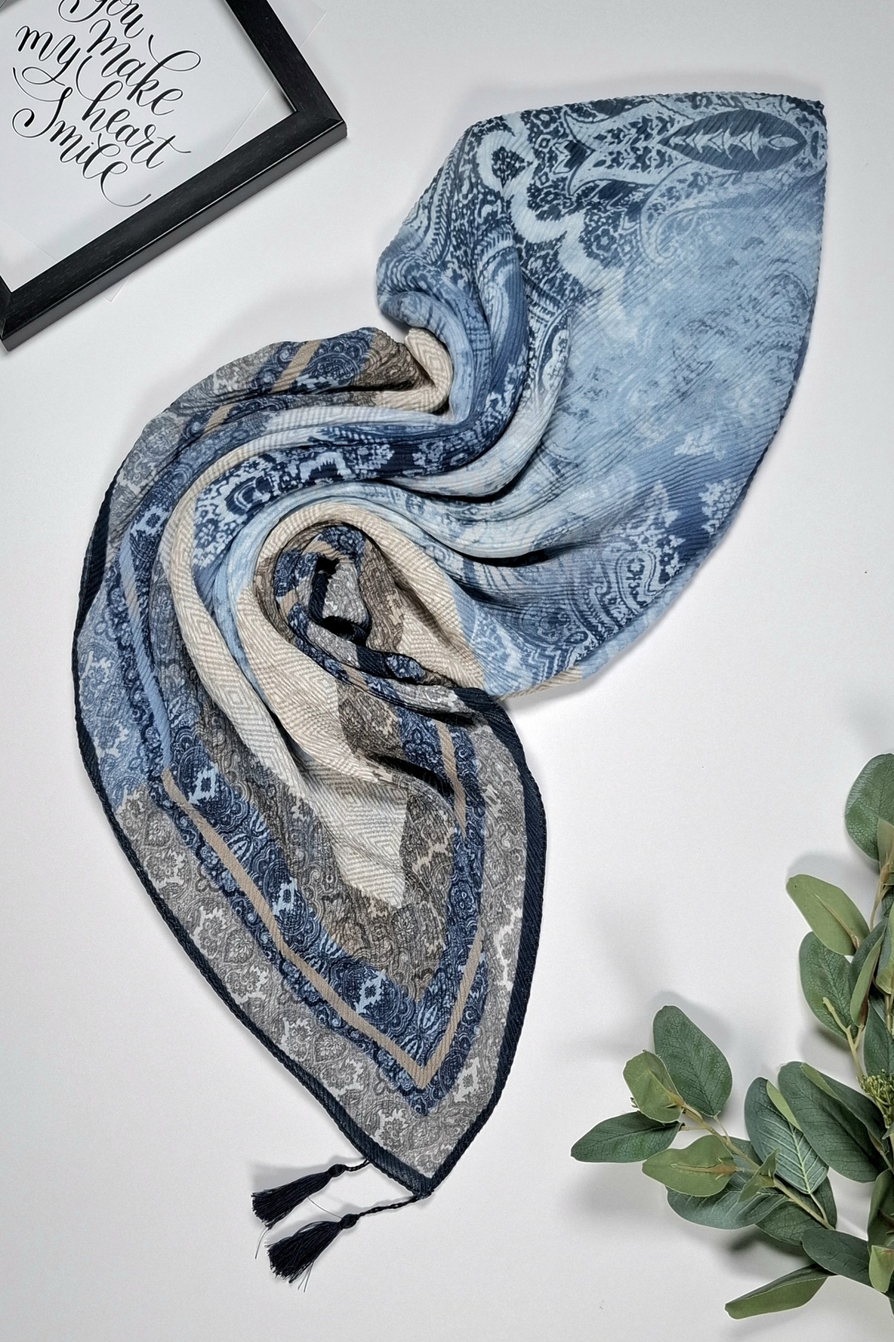 • روسری پلیسه نخی ابریشمی مدل آذین کد F689-3